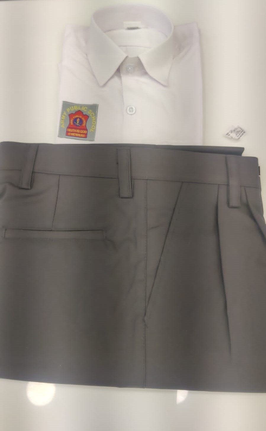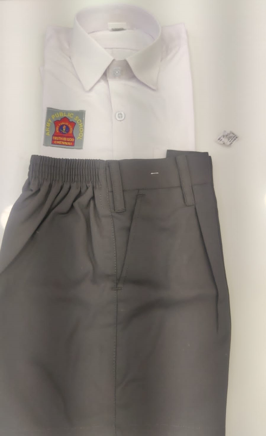 White Shirt Half Sleeves with school badge and Steel grey Full Pant (IX-XII)