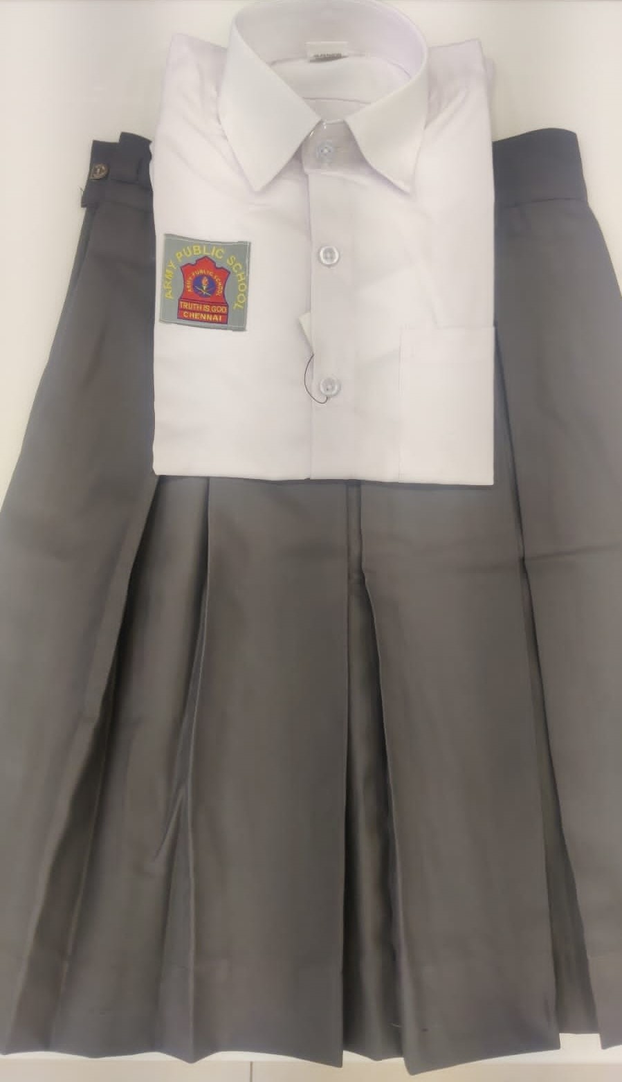 White Shirt Half Sleeves with school badge Steel grey Skirt (I-VIII)